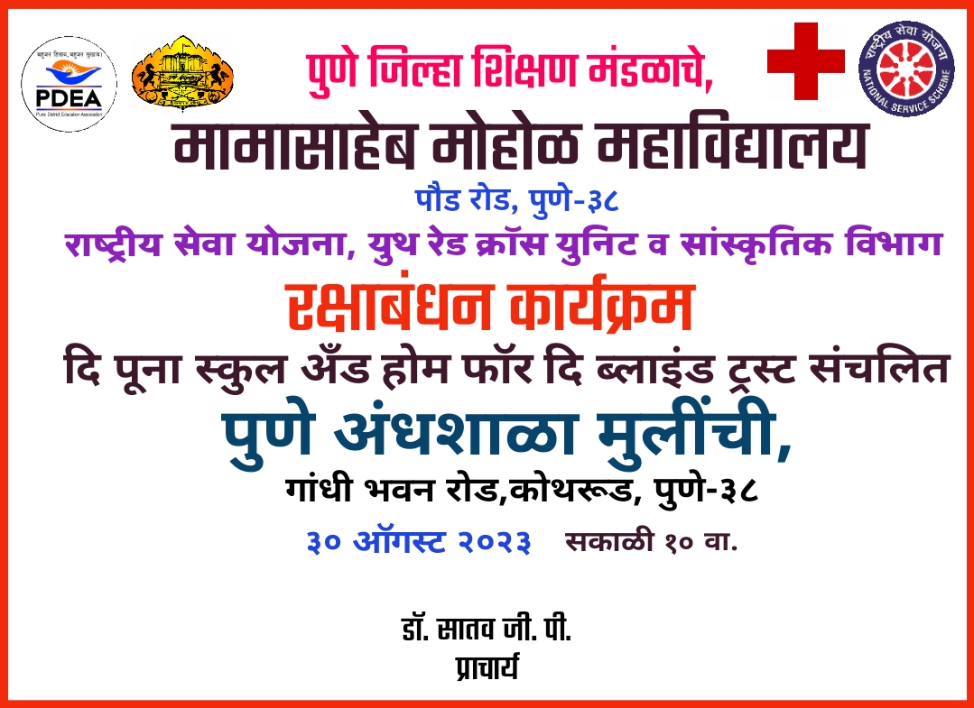 | 25 | रक्षाबंधन कार्यक्रम | Celebration of Rakshabandhan | Cultural | -- | All Students | Mamasaheb Mohol College | -- | Dr. Satav .G.P. | 2023-08-30 | 10:00 AM | -- | : PM | Rakshabandhan celeb 23.jpeg |