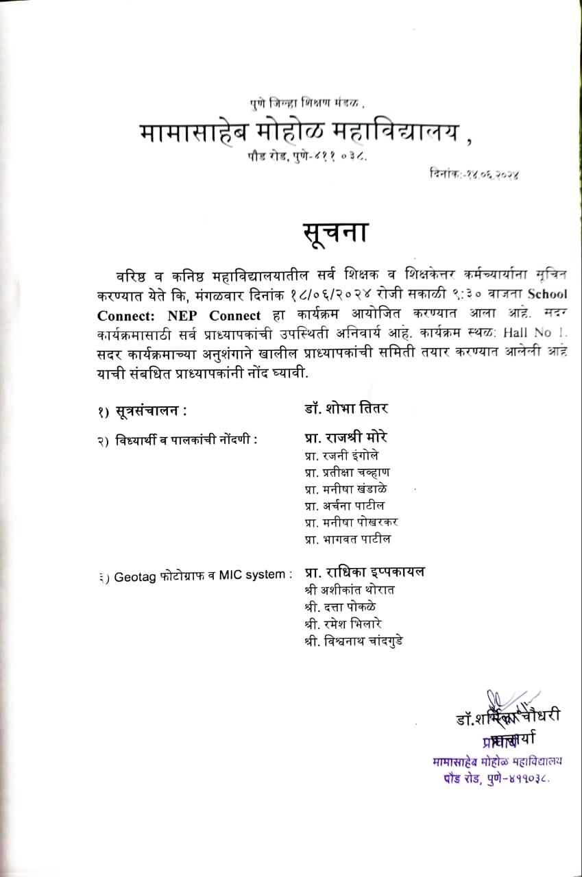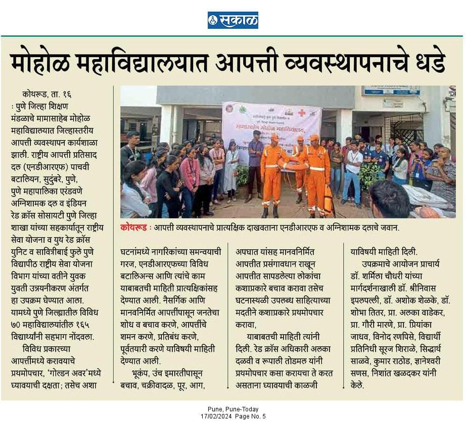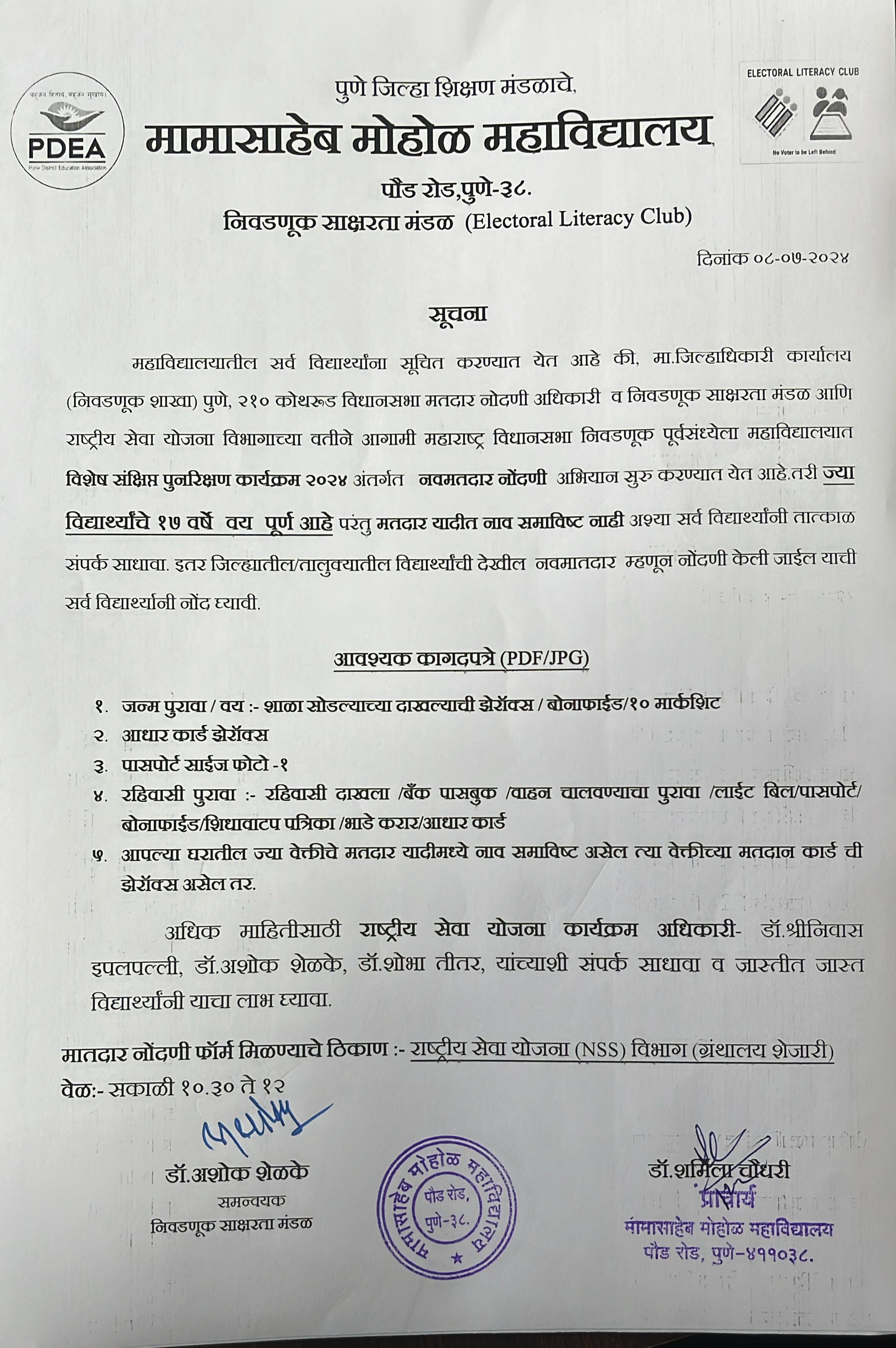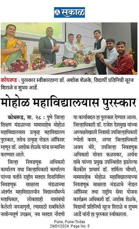 | 2024-01-20 | NSS 2024 Activity plans | -- | मामासाहेब मोहोळ महाविद्यालय विद्यापीठस्तरीय कार्यशाळा-1.pdf |