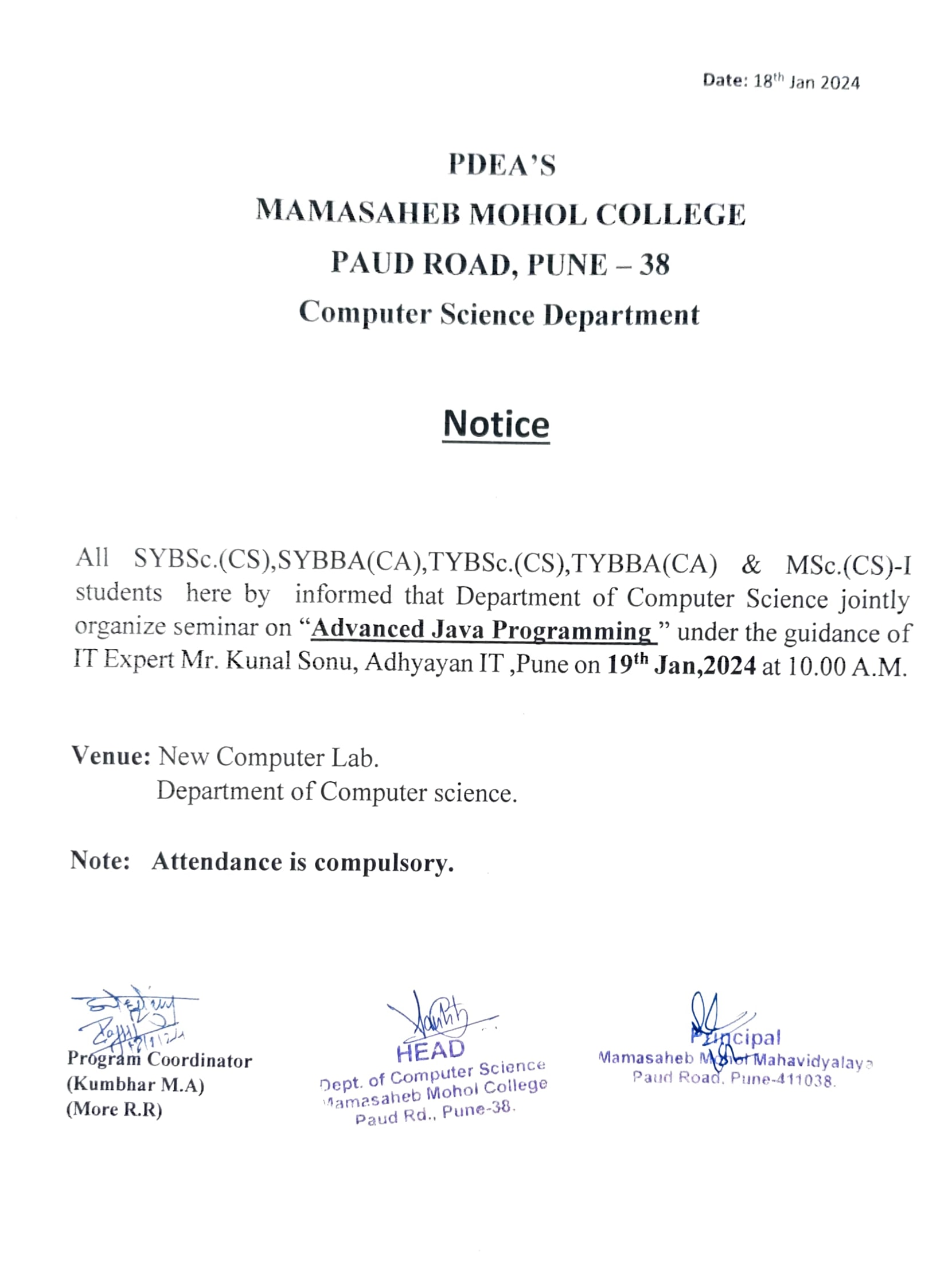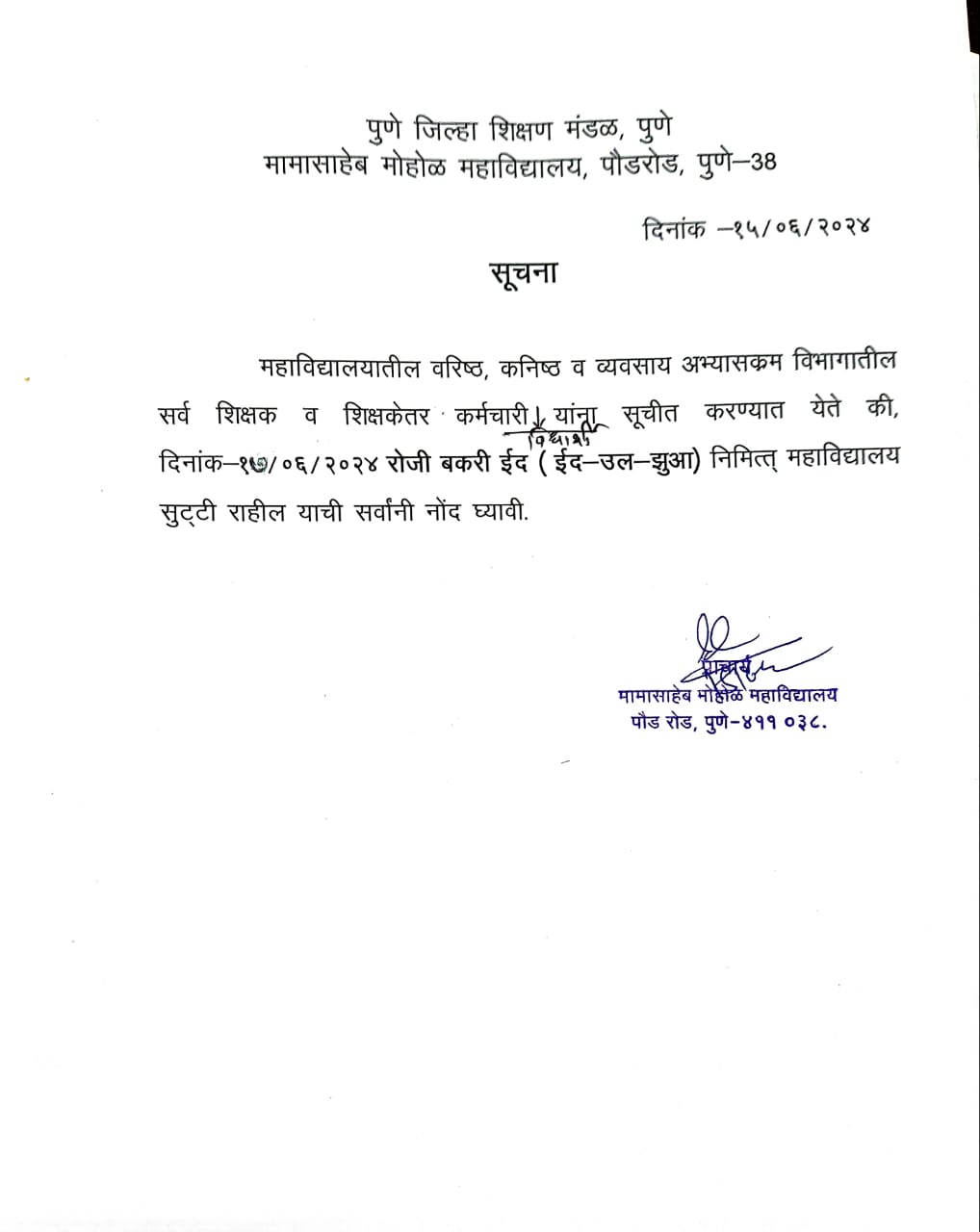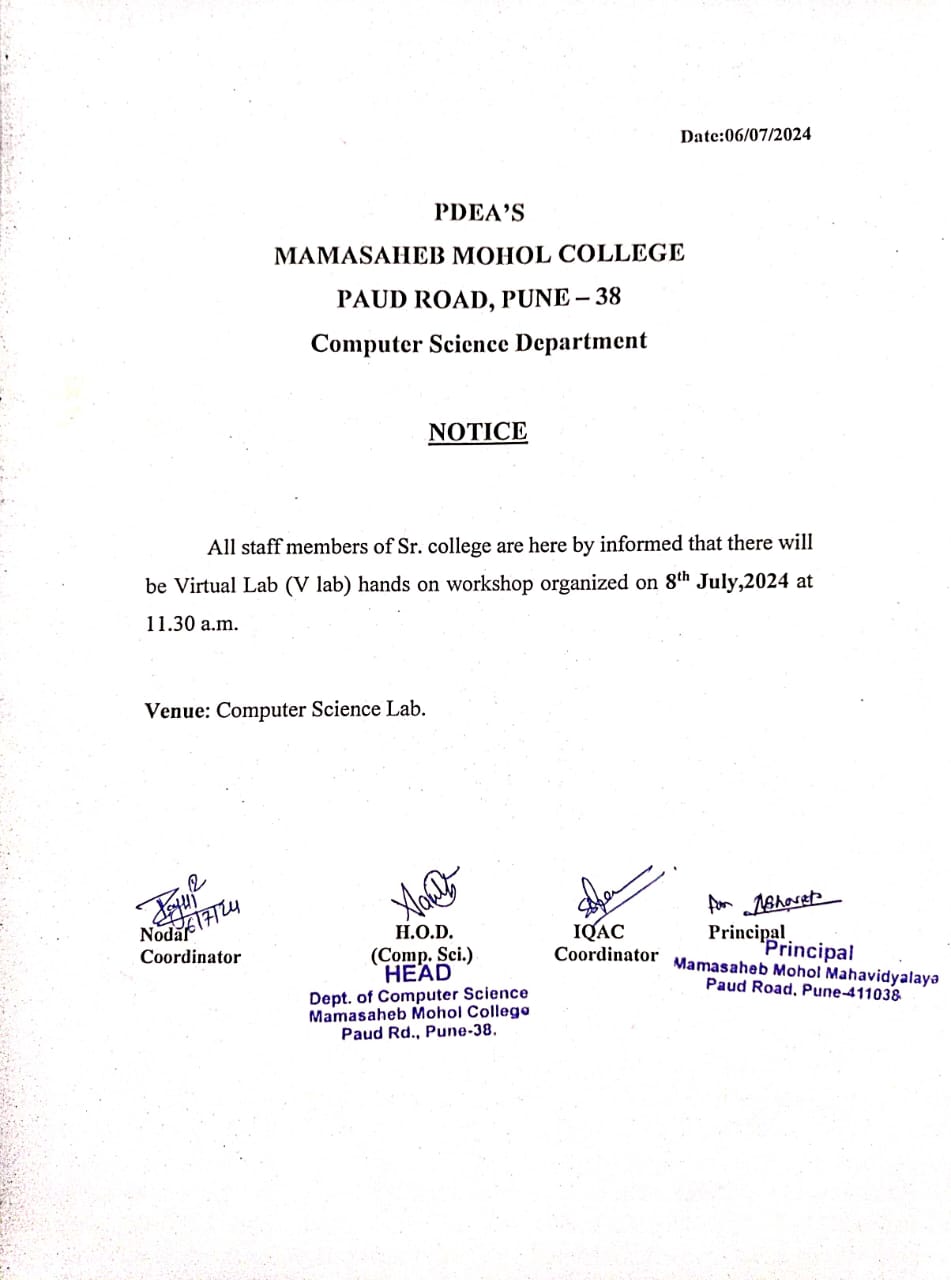 | 2024-01-20 | NSS 2024 Activity plans | -- | मामासाहेब मोहोळ महाविद्यालय विद्यापीठस्तरीय कार्यशाळा-1.pdf |