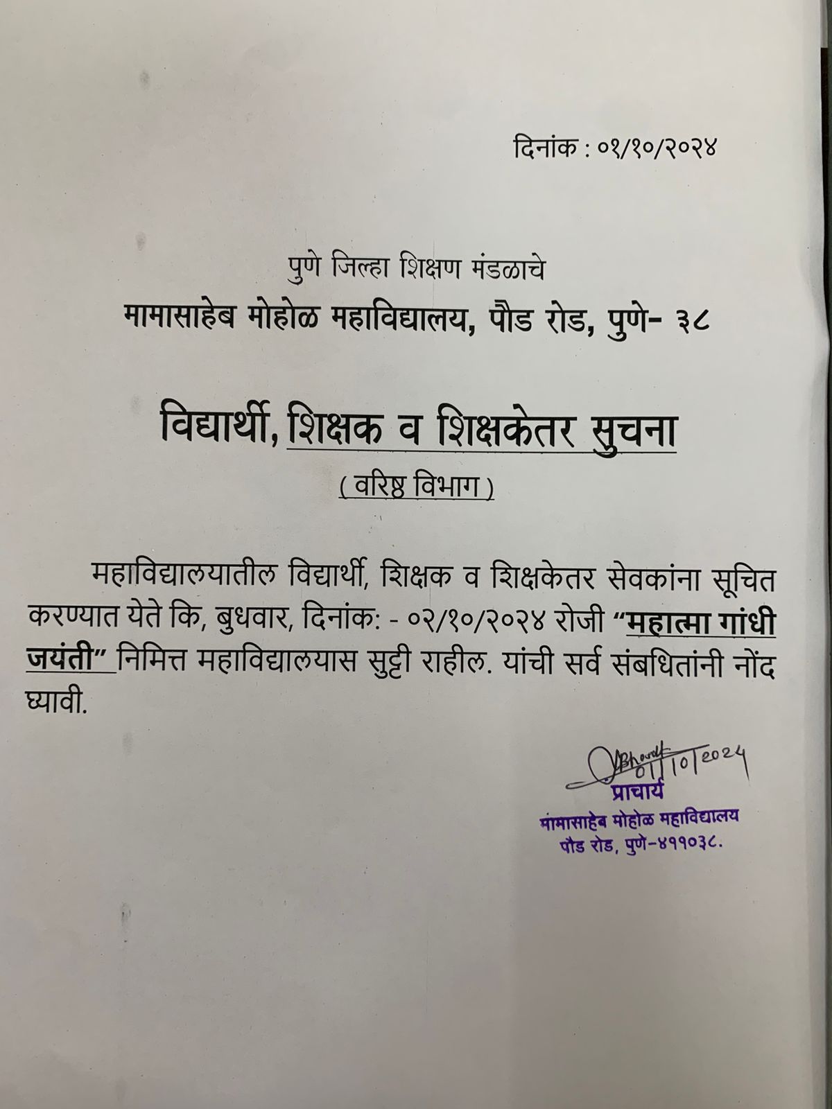 | 2024-02-10 | महात्मा गांधी जयंती (०२-१०-२०२४) | महात्मा गांधी जयंती निमित्त सुट्टी (०२-१०-२०२४) | महात्मा गांधी जयंती (०२-१०-२०२४).jpeg |