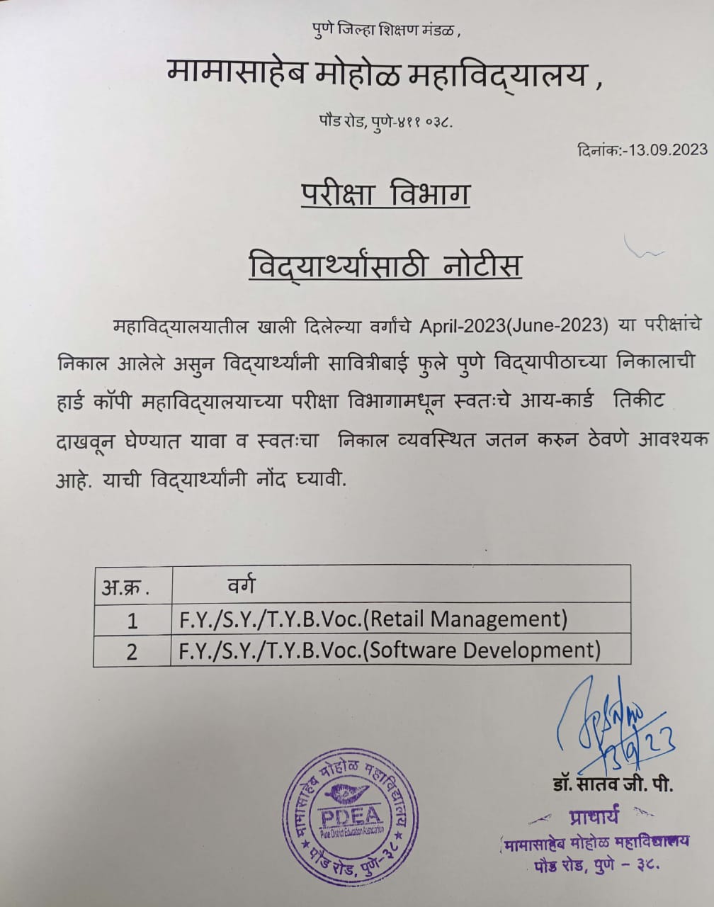 | 2023-09-13 | April 2023 Results Out | SPPU Results for April 2023 exam F.Y./S.Y./T.Y. B.Voc. available in Exam Department | april results23.jpeg |