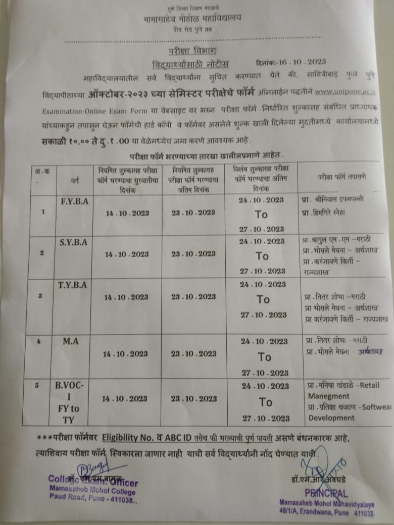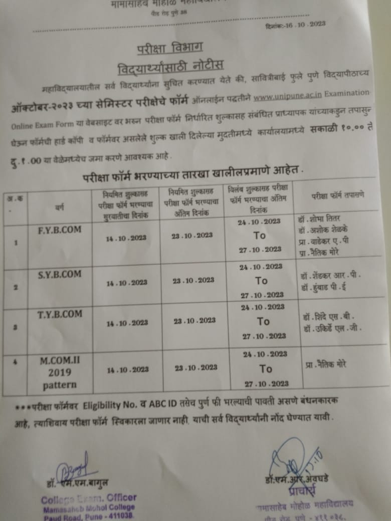 | 2023-10-16 | Oct-Nov 2023 Exam forms out for B.Com/M.com | Filling of Exam Form Started for B.Com/M.com | Exam Form bcom.jpeg |