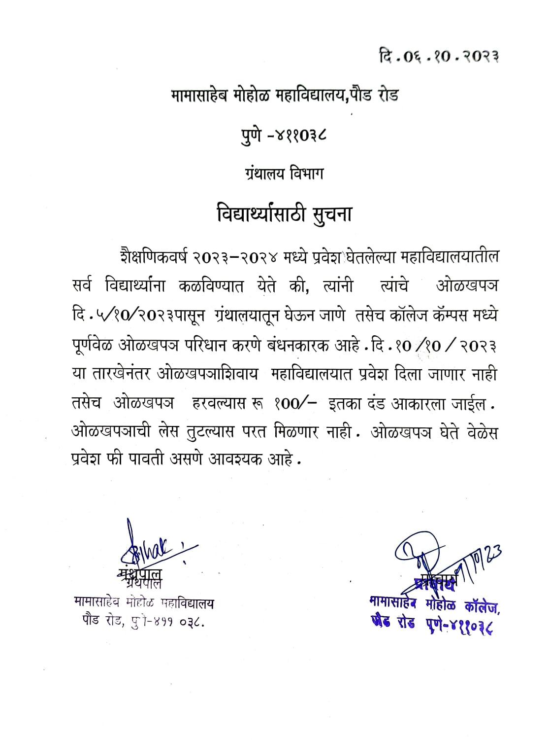 | 2023-09-13 | Collect Hall Tickets From Library | Hall Tickects avaialable | HallTicketcollection.jpeg |