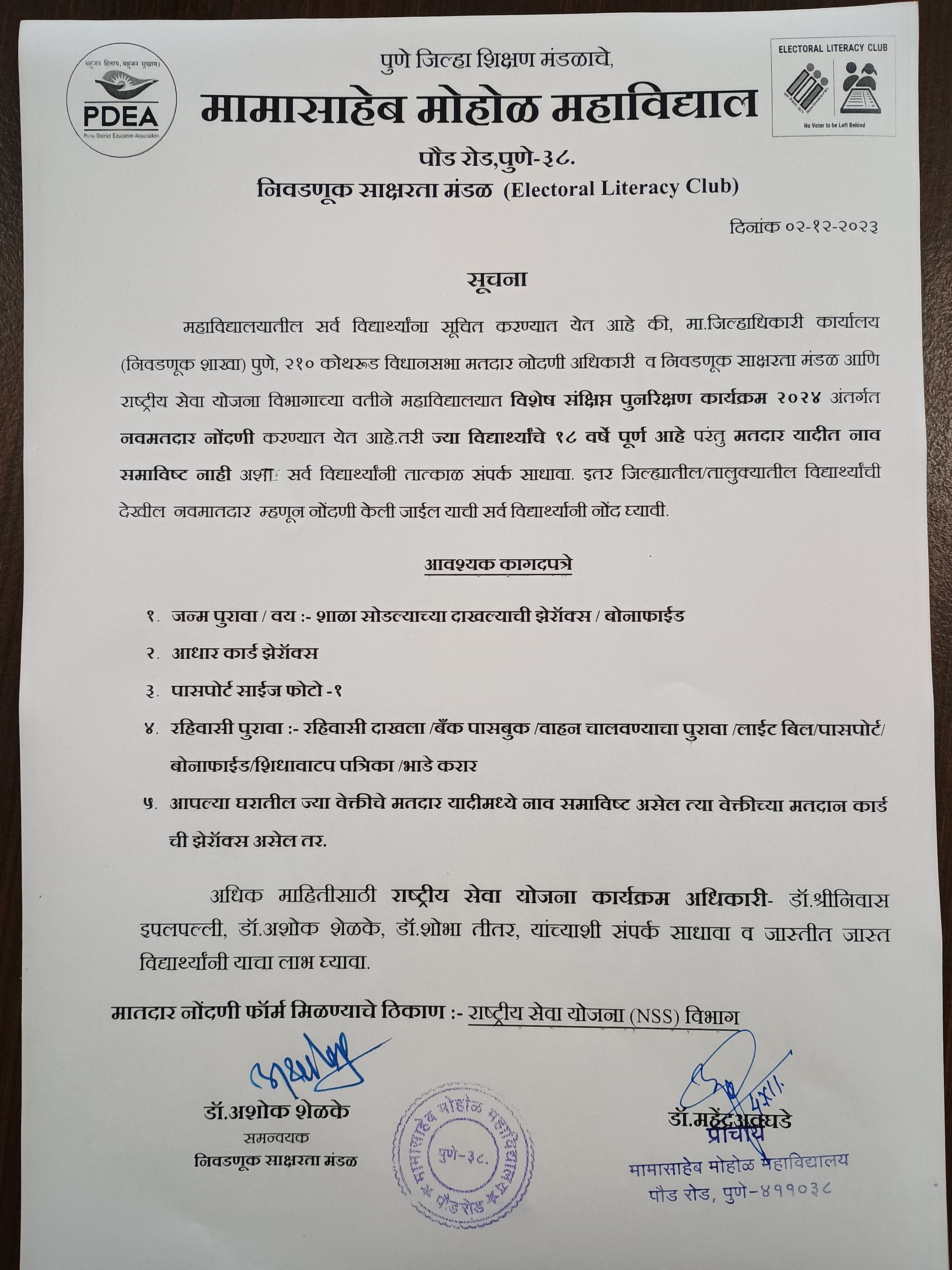 | 2023-12-02 | Voters Registration - Electoral Literacy | Voters Registration - Electoral Literacy Club NSS Dept. | Voters Registration - Electoral Literacy .jpeg |